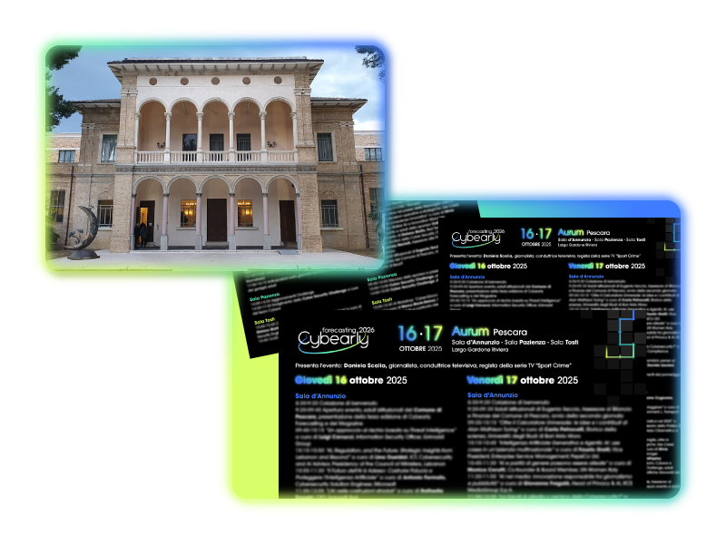 Il 16 e 17 ottobre 2025 torna a Pescara, presso l’Aurum, Cybearly Forecasting 2026, l’evento nazionale organizzato da BearIT e Cybear dedicato alla sicurezza informatica.
